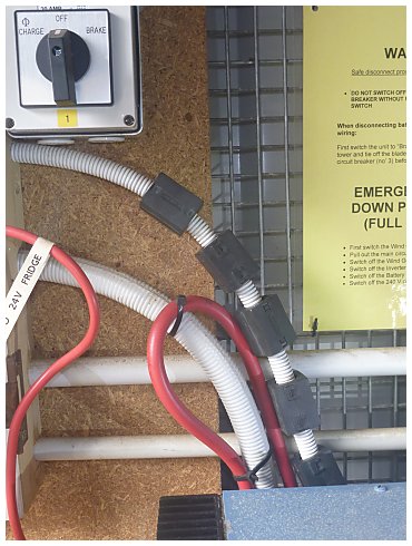 mains lead which exited from our inverter and from our battery