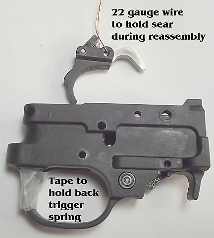 can be difficult. I used Scotch Tape to hold the trigger return spring