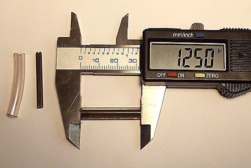 1/8'’ hardened steel roll pin and a 1/4'’ vinyl hose with a 1/8'’ hole