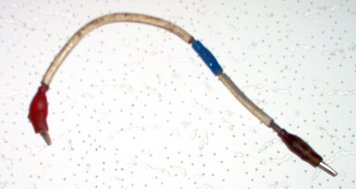 A jumper cable made using 10 gauge wire and small alligator clips