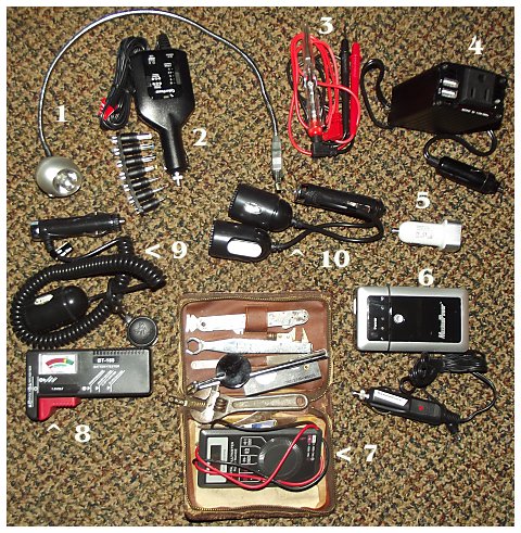 the small items required: a 12 volt multimeter, 12 volt