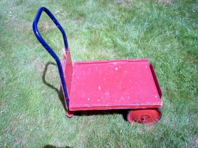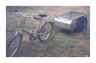 Peugeot folding bicycle towing a "Foldit" garden cart