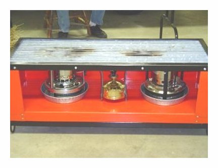 A small Butterfly stove can fit under a 12" square and 10" high stand,
