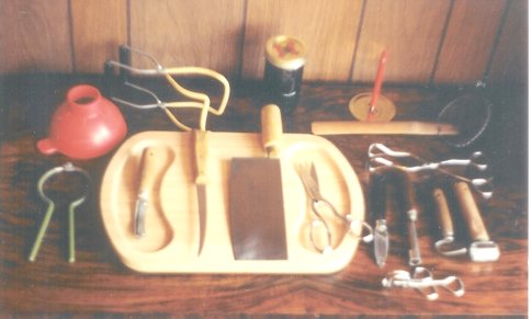 (left); assortment of tools needed to